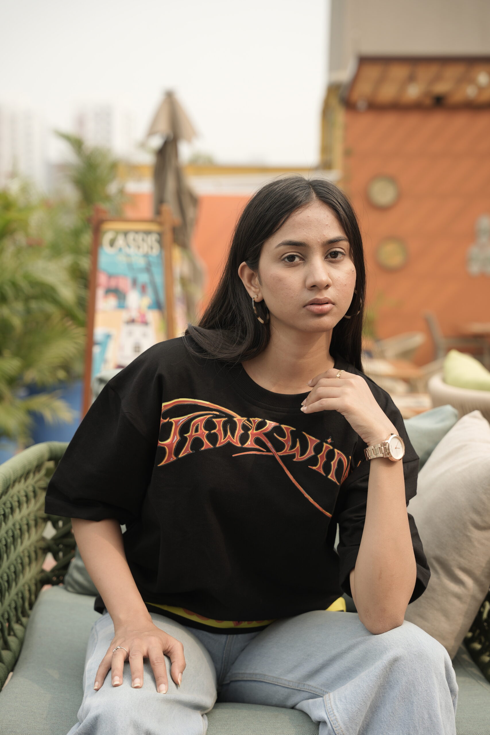 Drop-shoulder streetwear look</small >
